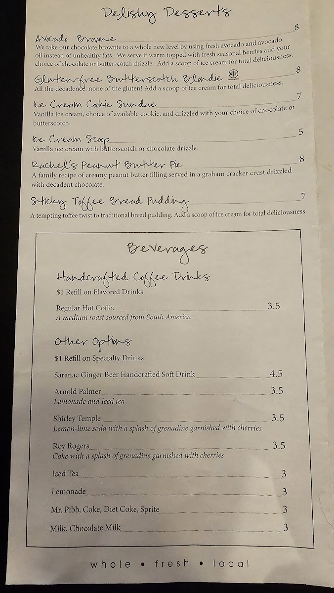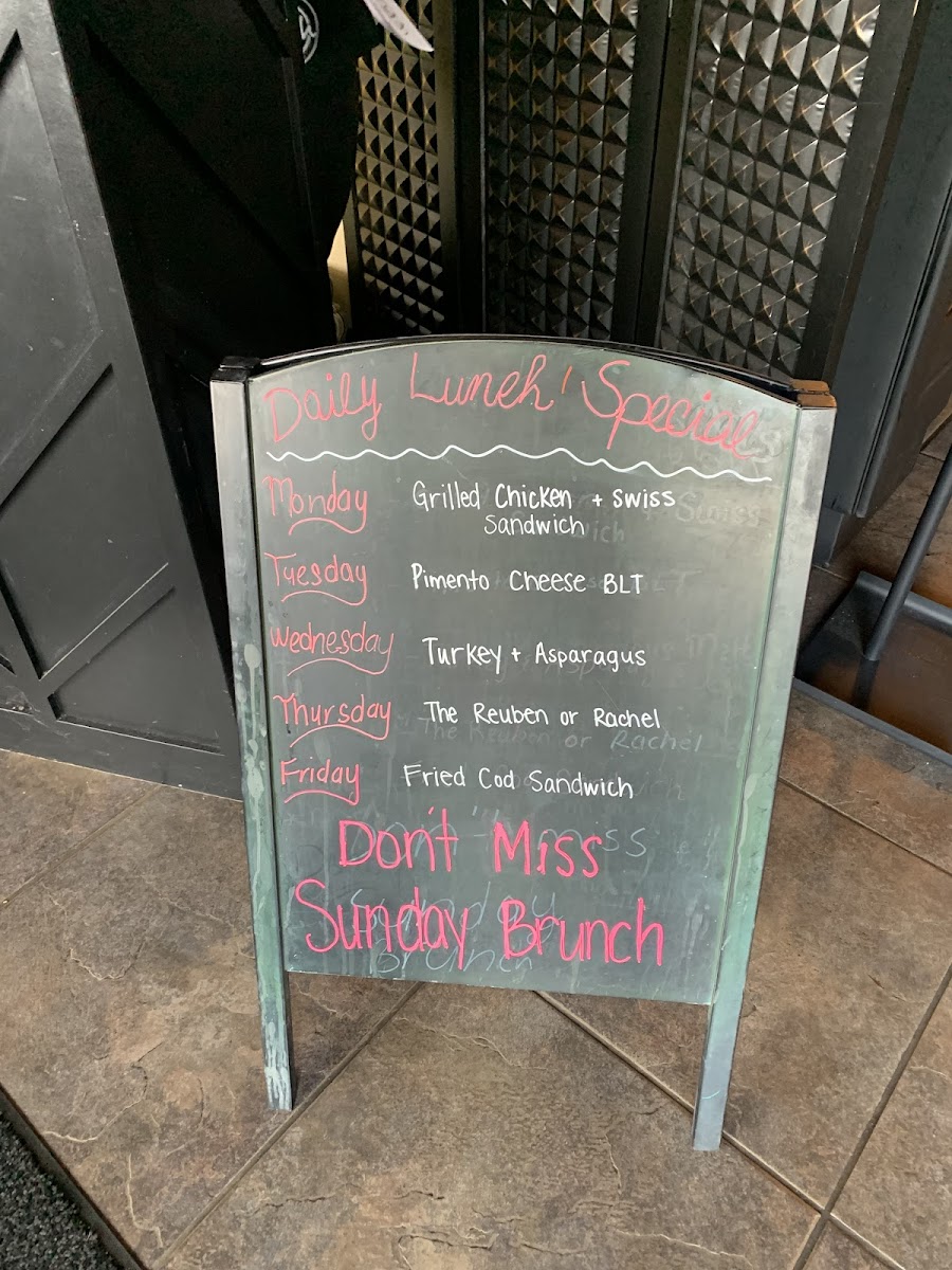 Daily lunch specials showcase variety and hometown charm, from the all-natural grilled chicken sandwich to the classic Reuben, all served on house-made bread or buns. Standouts like Cajun Shrimp over creamy polenta and the Firecracker Shrimp appetizer reveal the kitchen’s attention to bold flavors and quality ingredients.